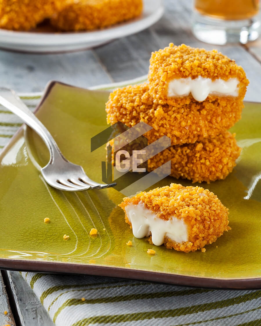 Mozzarella 40%(latte vaccino, sale, caglio, fermenti lattici), correttore di acidità: acido citrico. Conservante:E202, preparato alimentare 40% (formaggio fuso, proteine del latte, formaggi, siero di latte, E1420, acqua, margarina, sale), pangrattato (farina di grano tenero tipo "0", lievito di birra, sale, spezie naturali), olio di semi di girasole, farina di grano tenero tipo "0", farina di mais, amido modificato di mais, glutine di frumento, fibra di frumento, sale.